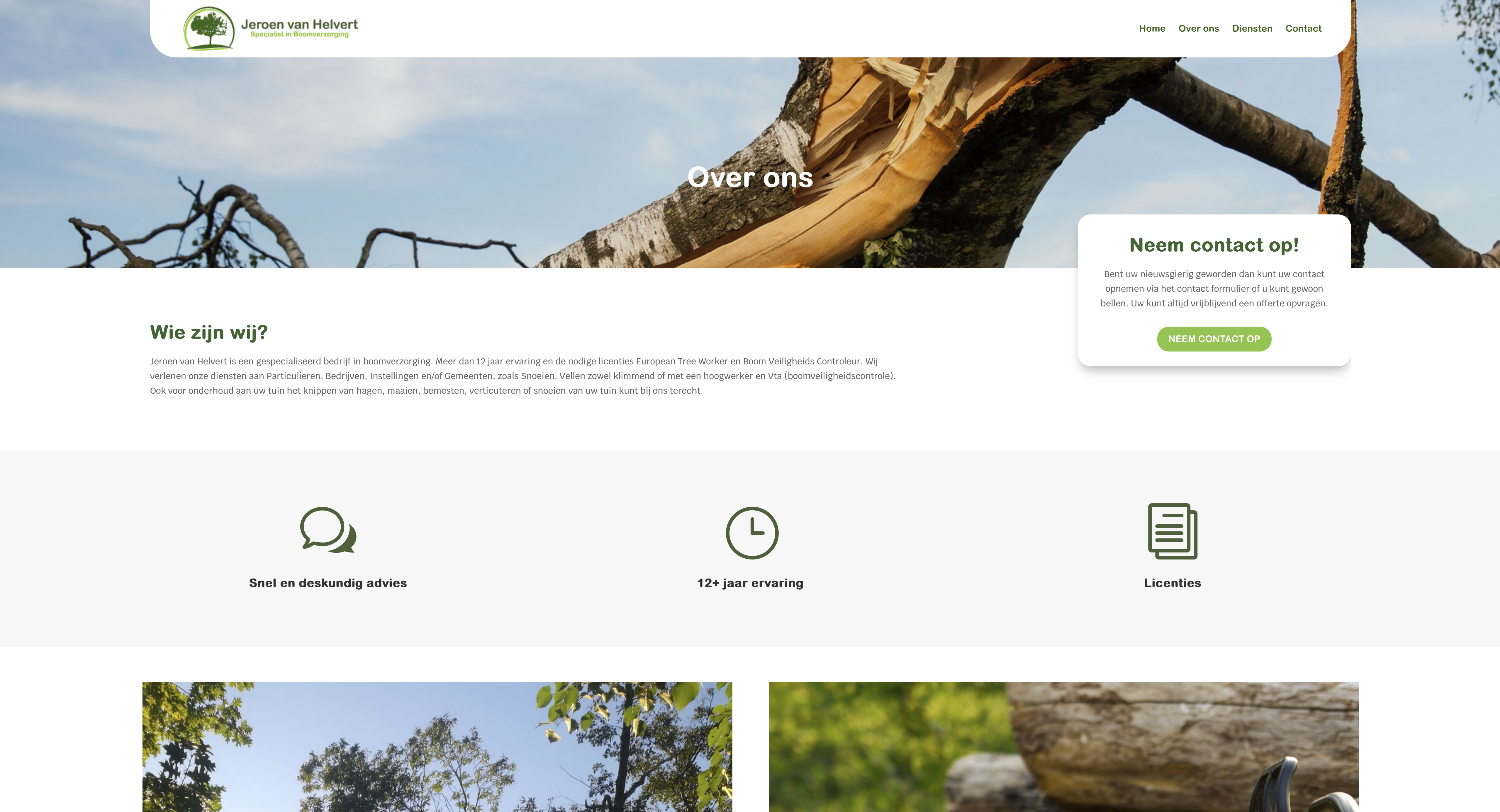Jeroen van Helvert is een gespecialiseerd bedrijf in boomverzorging. Meer dan 12 jaar ervaring en de nodige licenties European Tree Worker en Boom Veiligheids Controleur.